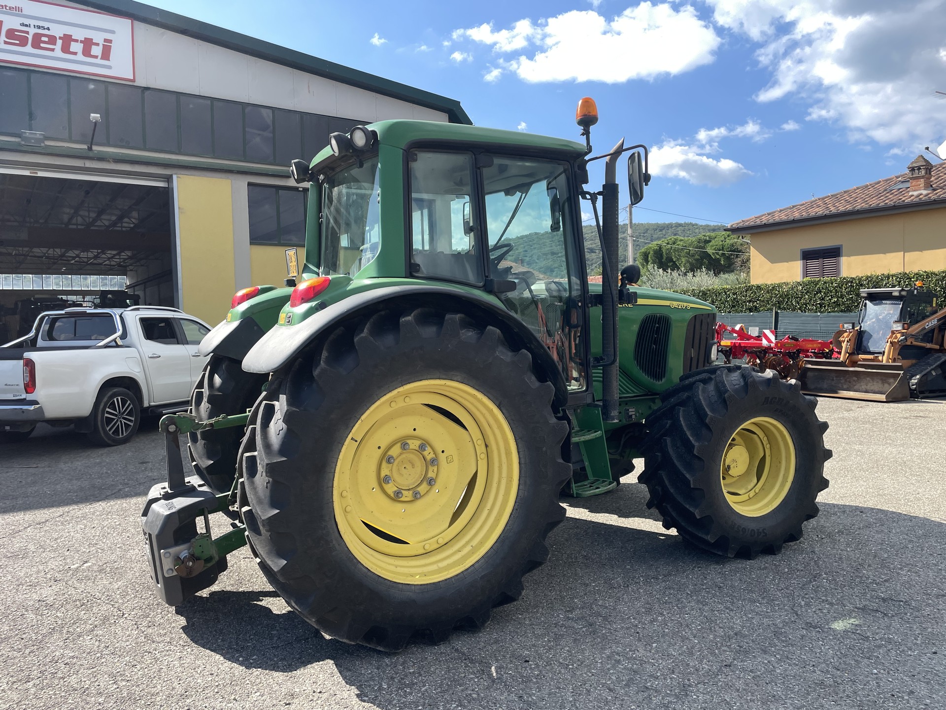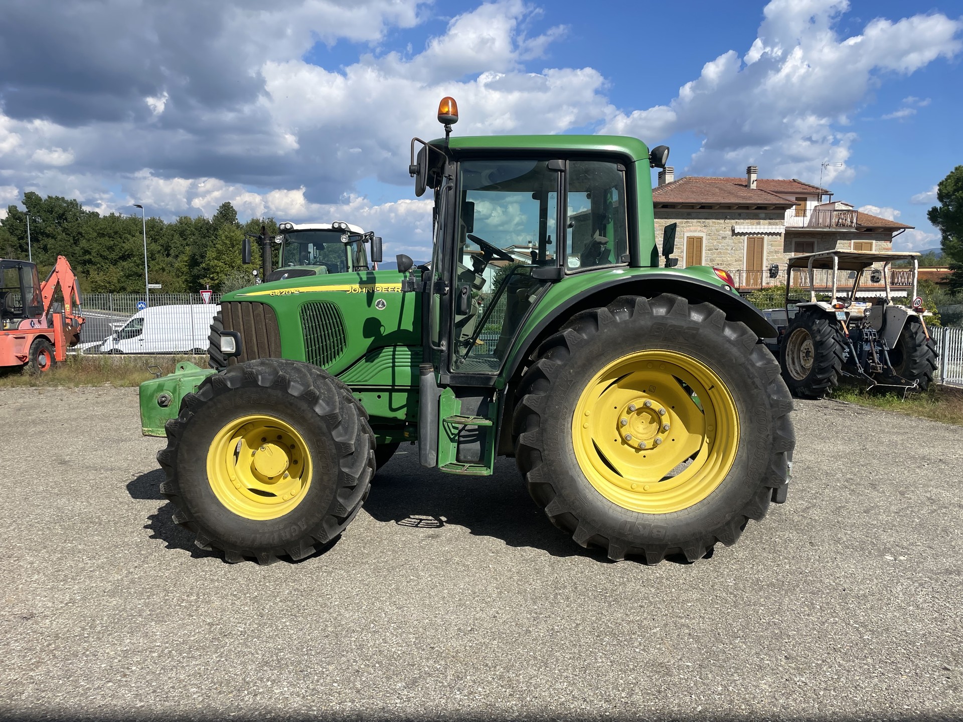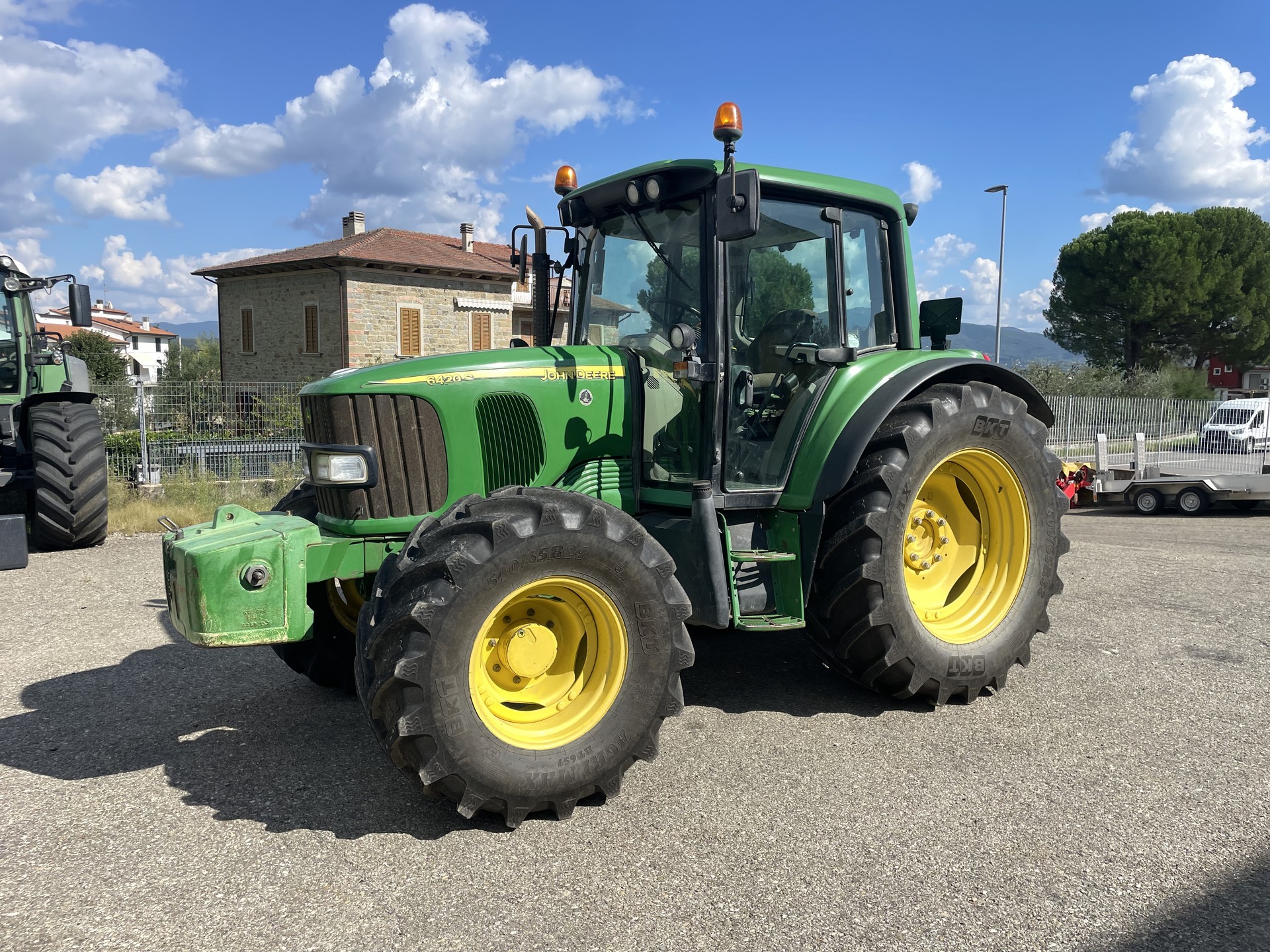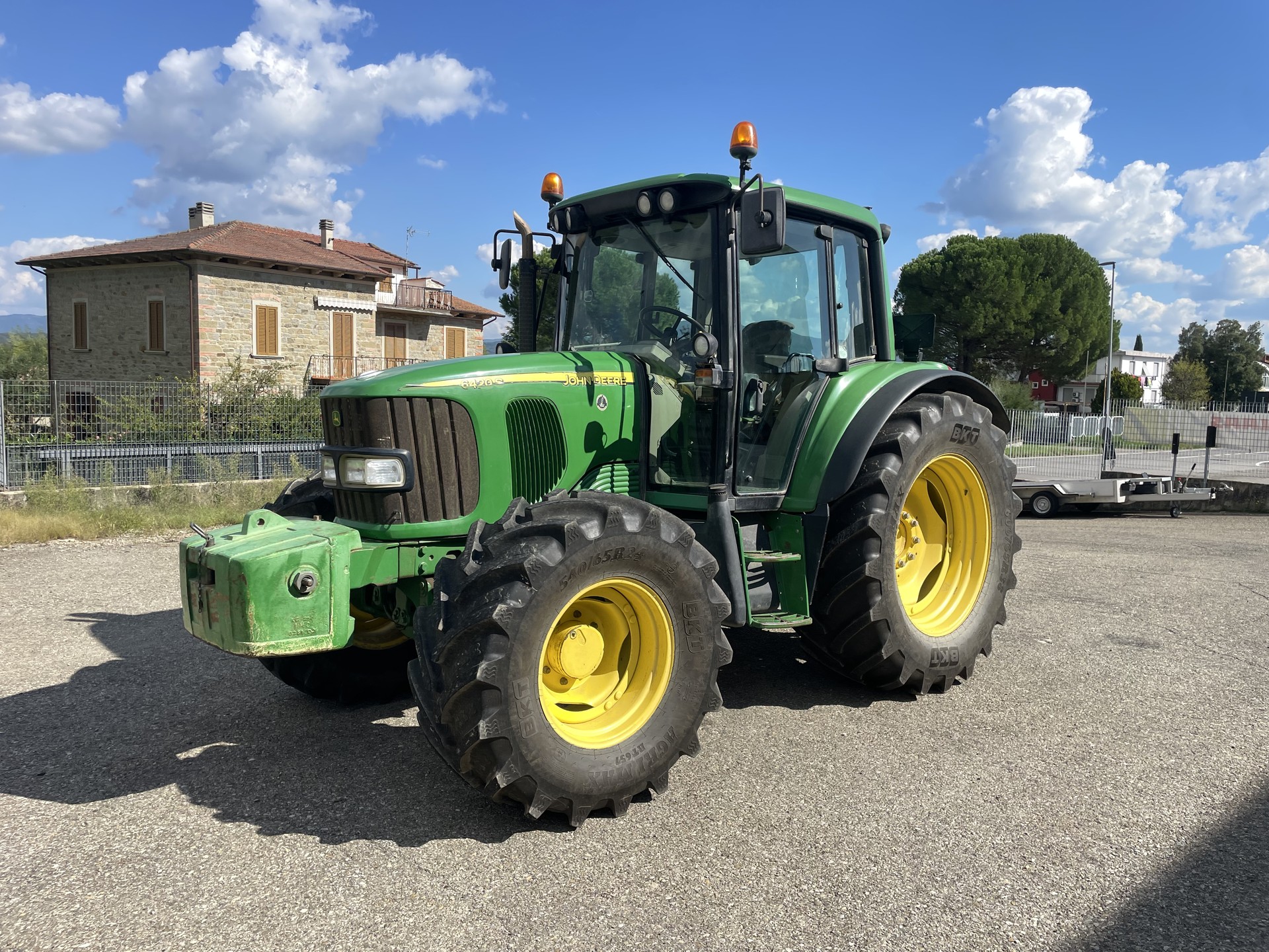 Trattore John Deere 6420 S, anno 2006, 10000 ore di lavoro. Macchina completa di ponte sospeso, zavorra anteriore, cabina con clima, 3 distributori. Gommata 600/65 R38 al 95% post. e 540/65 R24 al 95% ant.