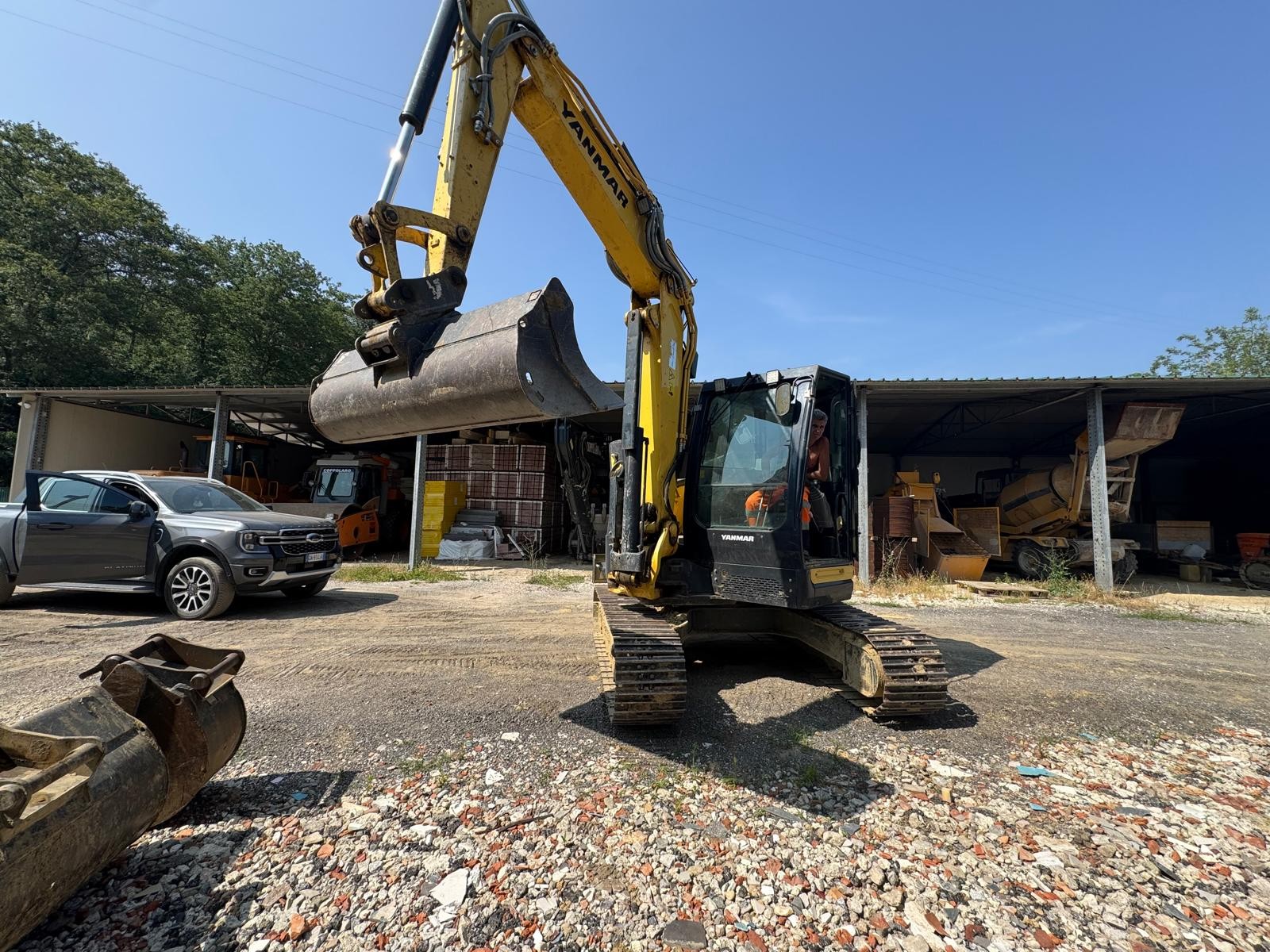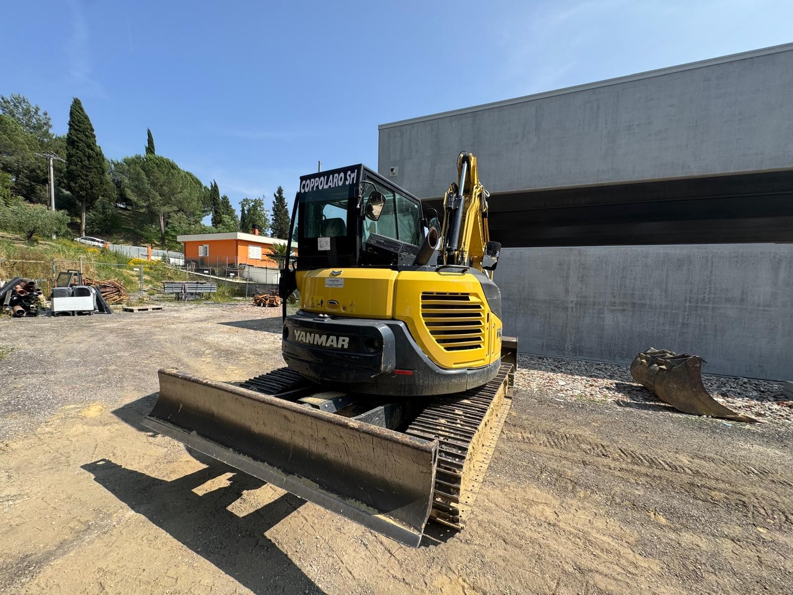 Escavatore Yanmar ViO 80, anno 2019, 2800 ore di lavoro. Macchina completa di cingoli in ferro, braccio triplice, attacco rapido cangini CR 70, benna scavo e benna pulizia canali.